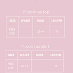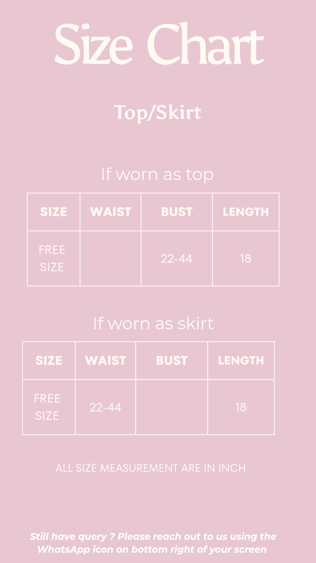 Smocked construction throughout the bodice allows for a secure and flattering fit whether worn as a top or as a high-waisted skirt.The piece is 18 inches in length and comfortably fits waist and bust sizes between 24" to 44", thanks to its stretchable, form-hugging smocking.